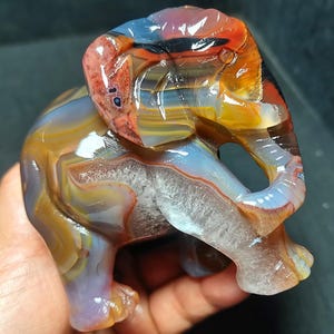 Specificatioin: This listing is for Money leopard Agate Hand-carved. Note: The texture is natural and the agate is natural, the color is natural。 The one you see in the photo is the exact one you will receive. Gemstone: Money leopard Agate Hand-carved Size(mm): 100*53*48mm Weight: 398.7g Quantity: 1 point 1 in=25.4 mm 1 lb=453.59g