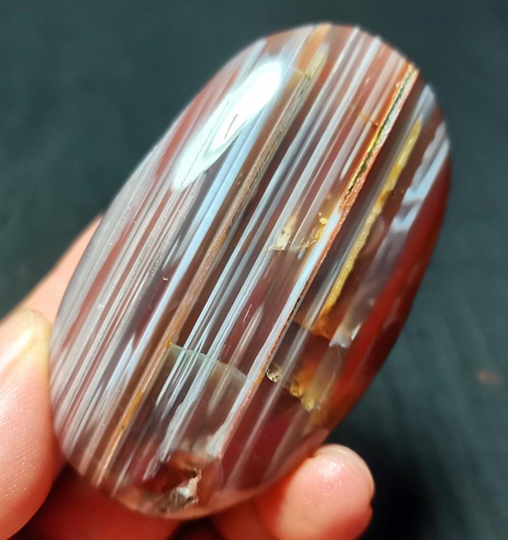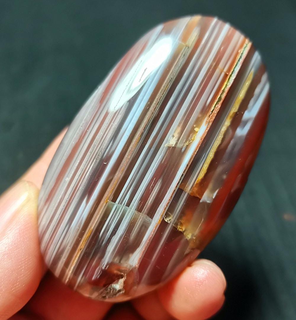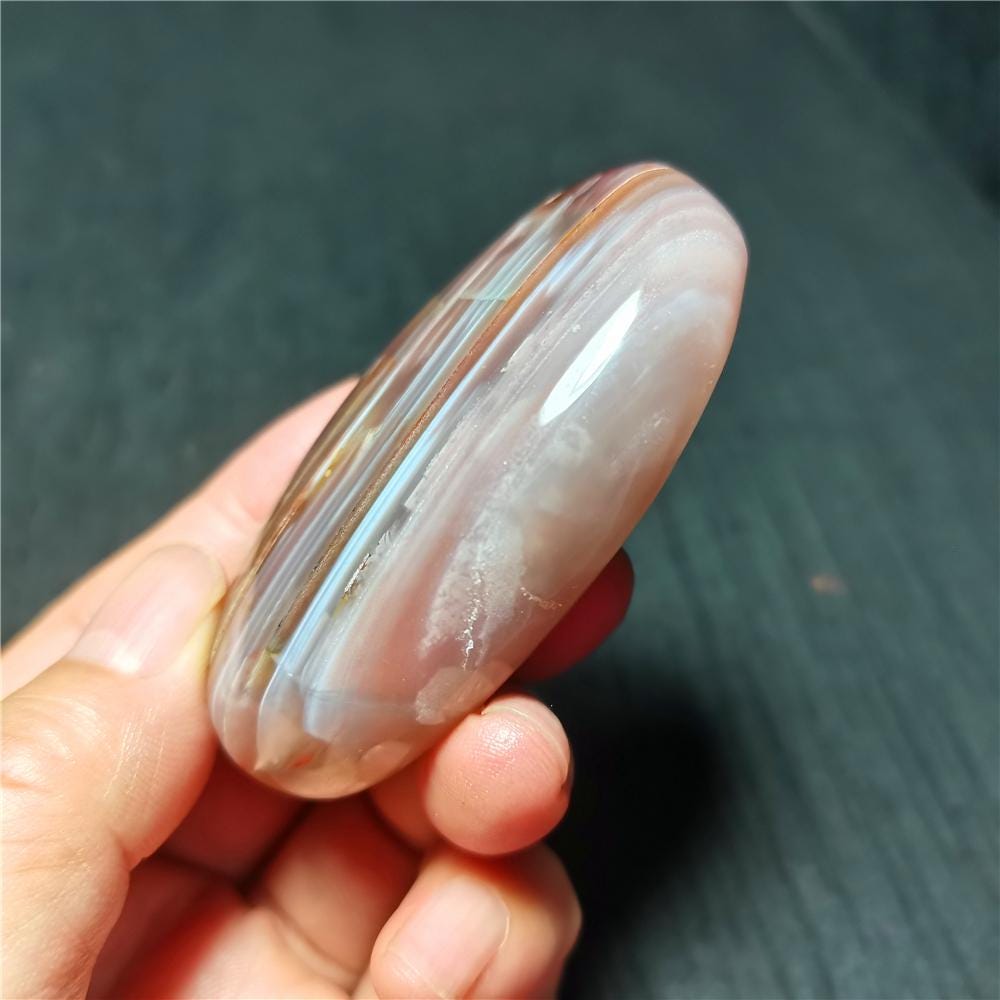 Specificatioin: This listing is for Banded Agate Crystal。 Note: The texture is natural and the agate is natural, the color is natural. The one you see in the photo is the exact one you will receive. Gemstone: Banded Agate Crystal Size(mm): 64*38*19mm Weight: 80g Quantity: 1 point 1 in=25.4 mm 1 lb=453.59g