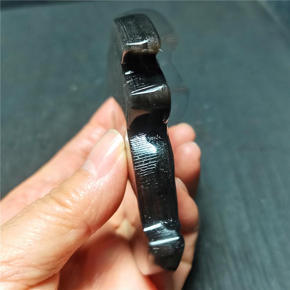 Specificatioin: This listing is for Black Glitter stone. Note: The texture is natural and the agate is natural, the color is natural。 The one you see in the photo is the exact one you will receive. Gemstone: Black Glitter stone Size(mm): 84*65*14mm Weight: 140g