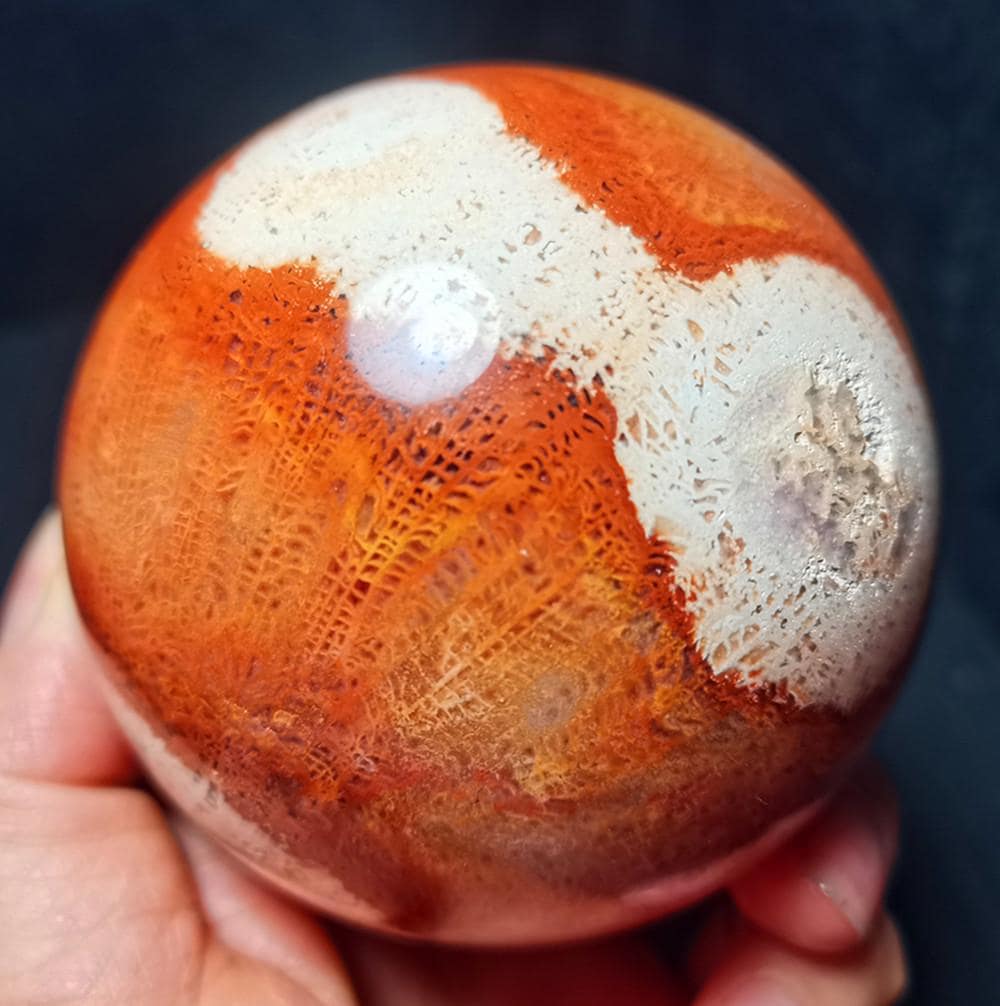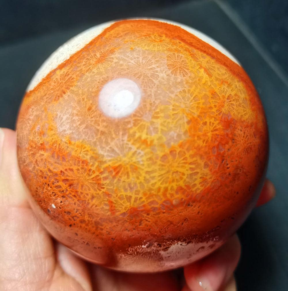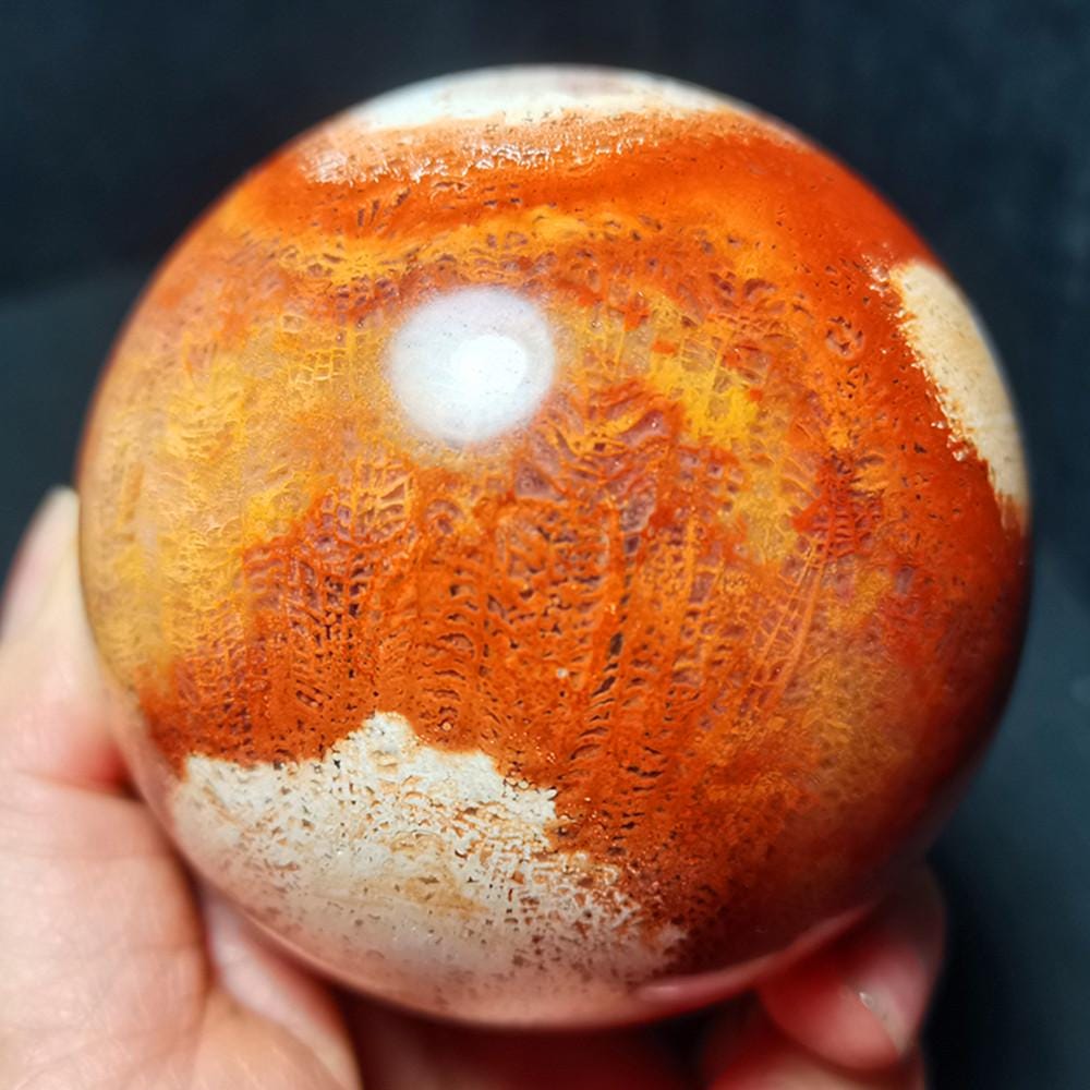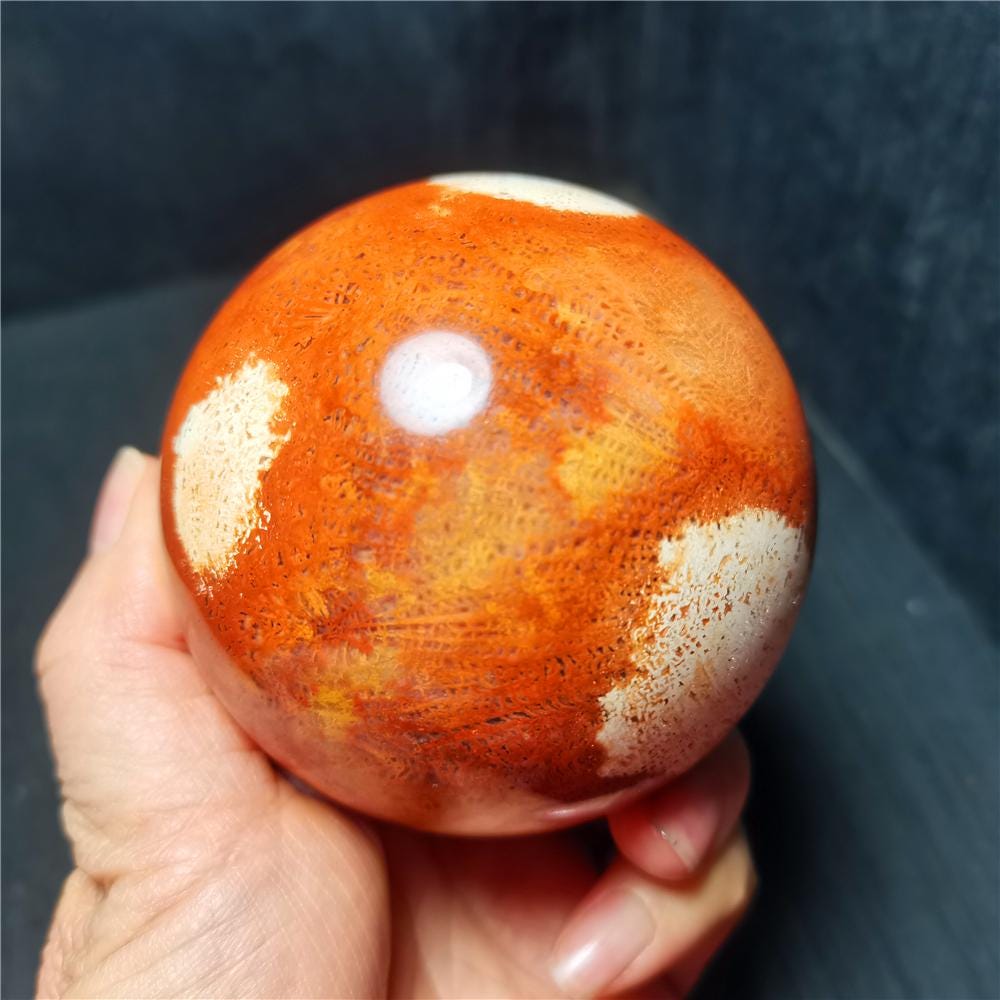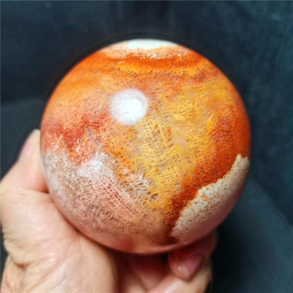 Note: Note: Texture is natural, color is natural. The one you see in the photo is the exact one you will receive. Gemstone: Coral Jade Agate Crystal Size(mm): 78mm Weight:667g Quantity: 1 point 1 in=25.4 mm 1 lb=453.59g