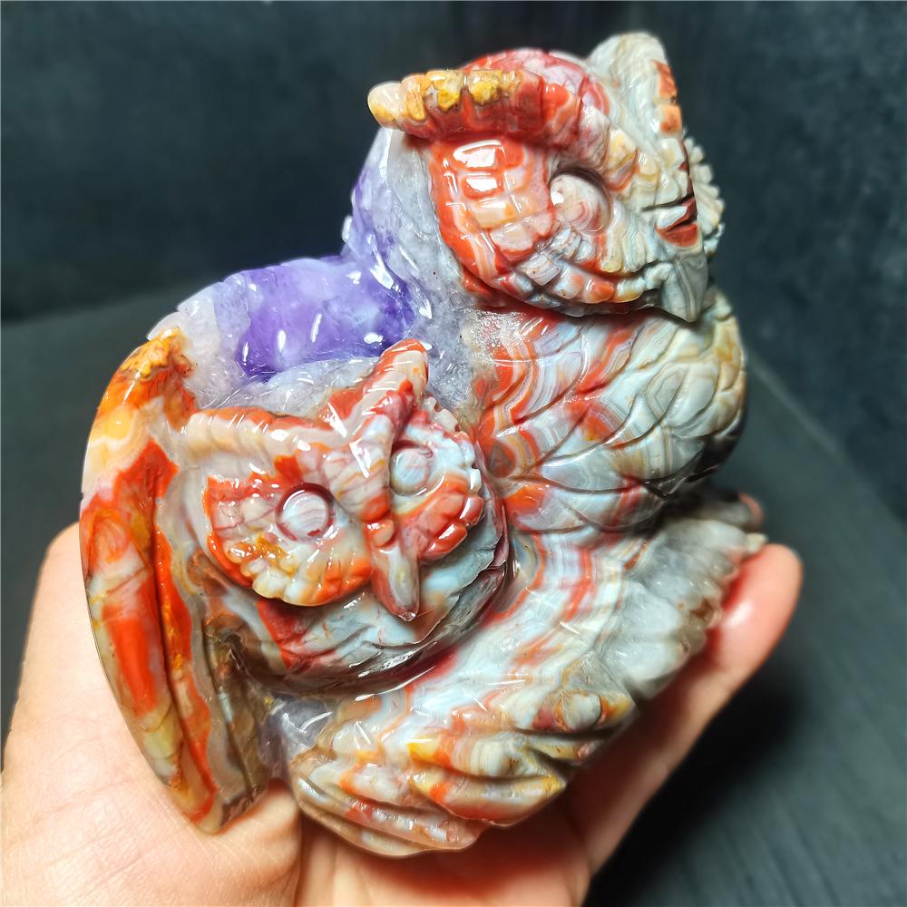 Note: Note: Texture is natural, color is natural. The one you see in the photo is the exact one you will receive. Gemstone: agate Size(mm): 118*99*55mm Weight: 819g Quantity: 1 point 1 in=25.4 mm 1 lb=453.59g
