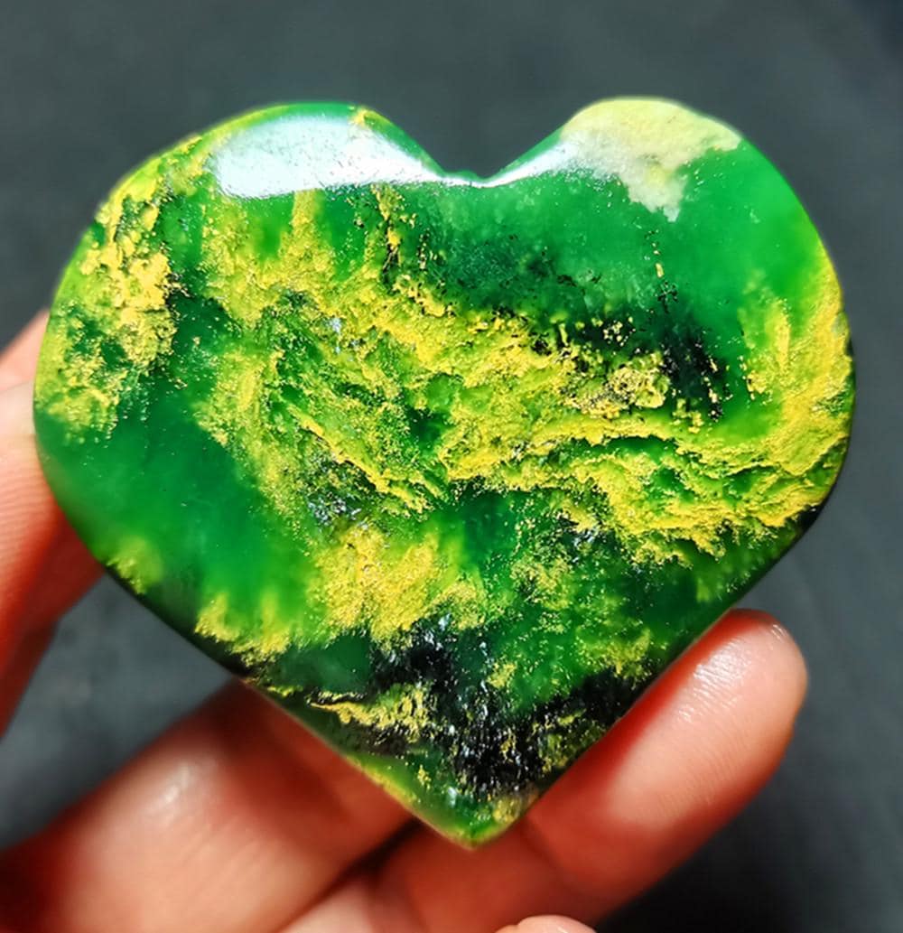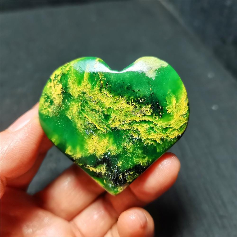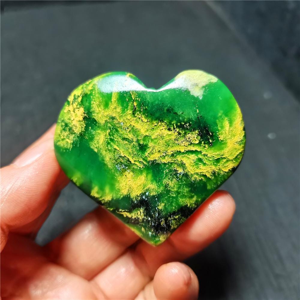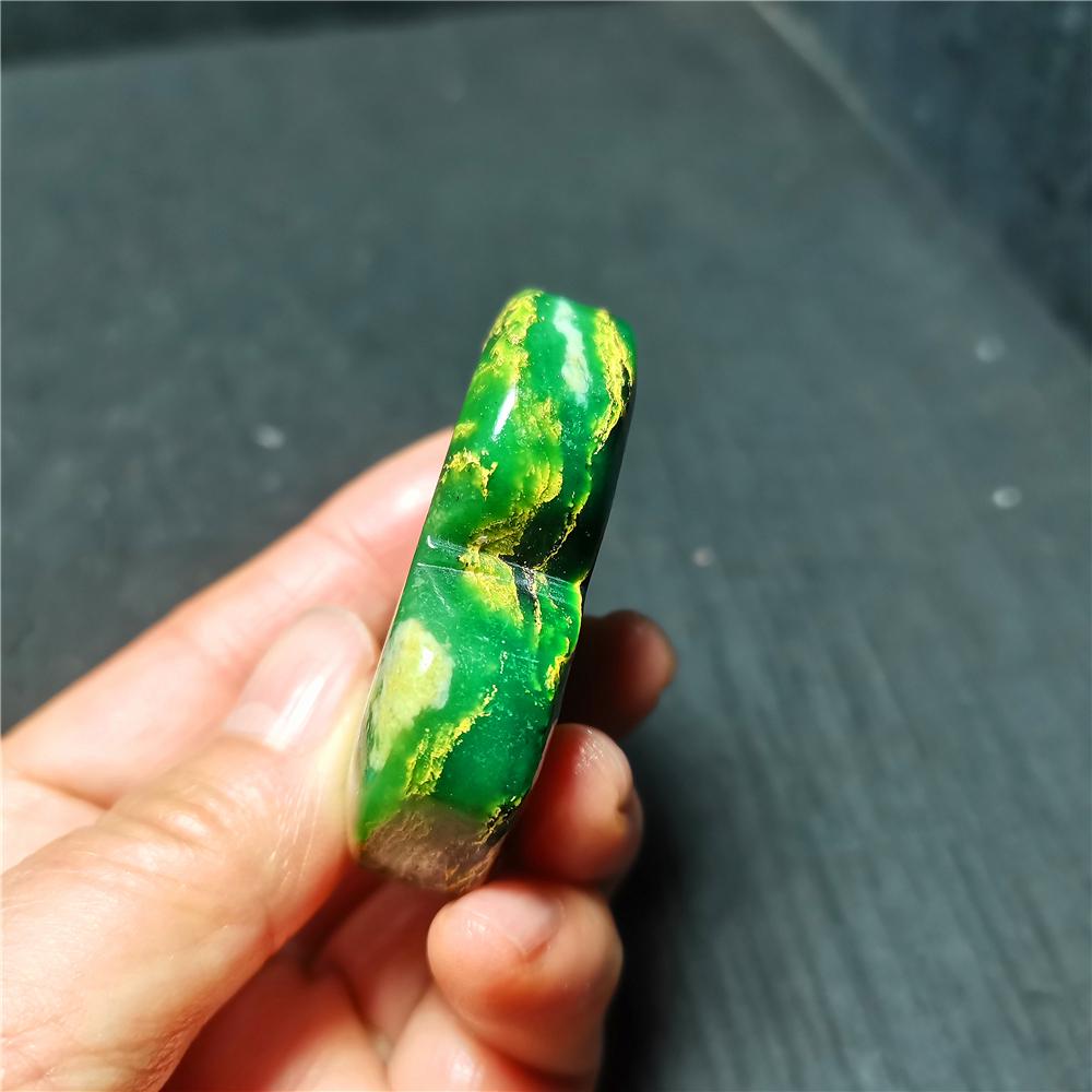 Note: Note: Texture is natural, color is natural. The one you see in the photo is the exact one you will receive. Gemstone: Green Emerald Jasper Crystal Size(mm): 54*50*14mm Weight:73.4g Quantity: 1 point 1 in=25.4 mm 1 lb=453.59g