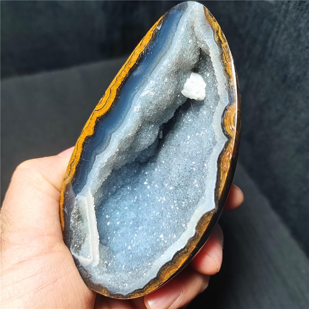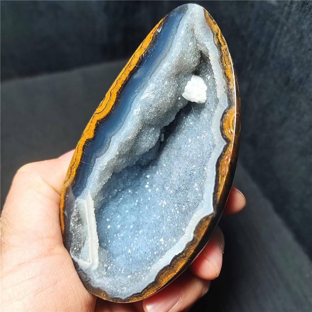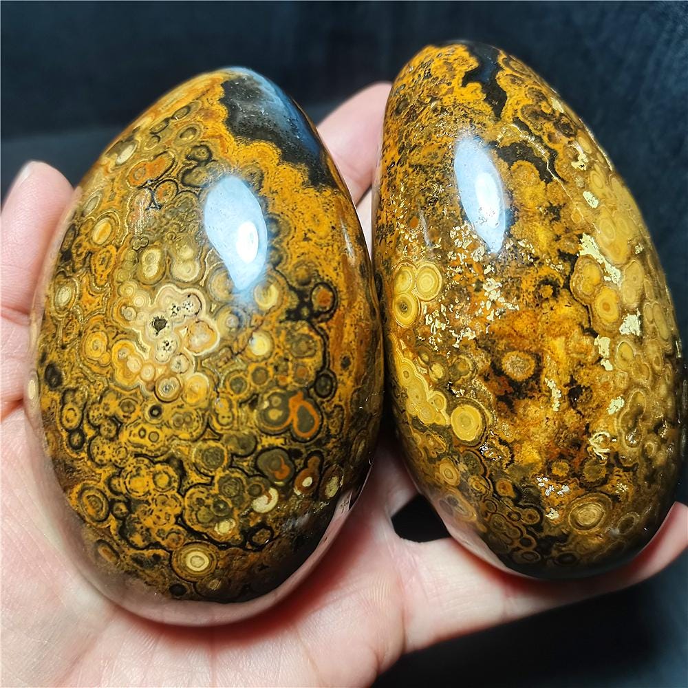 Note: Note: Texture is natural, color is natural. The one you see in the photo is the exact one you will receive. Gemstone: Gobi Eye Agate Size(mm): 91*59*39mm Weight: 428g Quantity: 1 point 1 in=25.4 mm 1 lb=453.59g