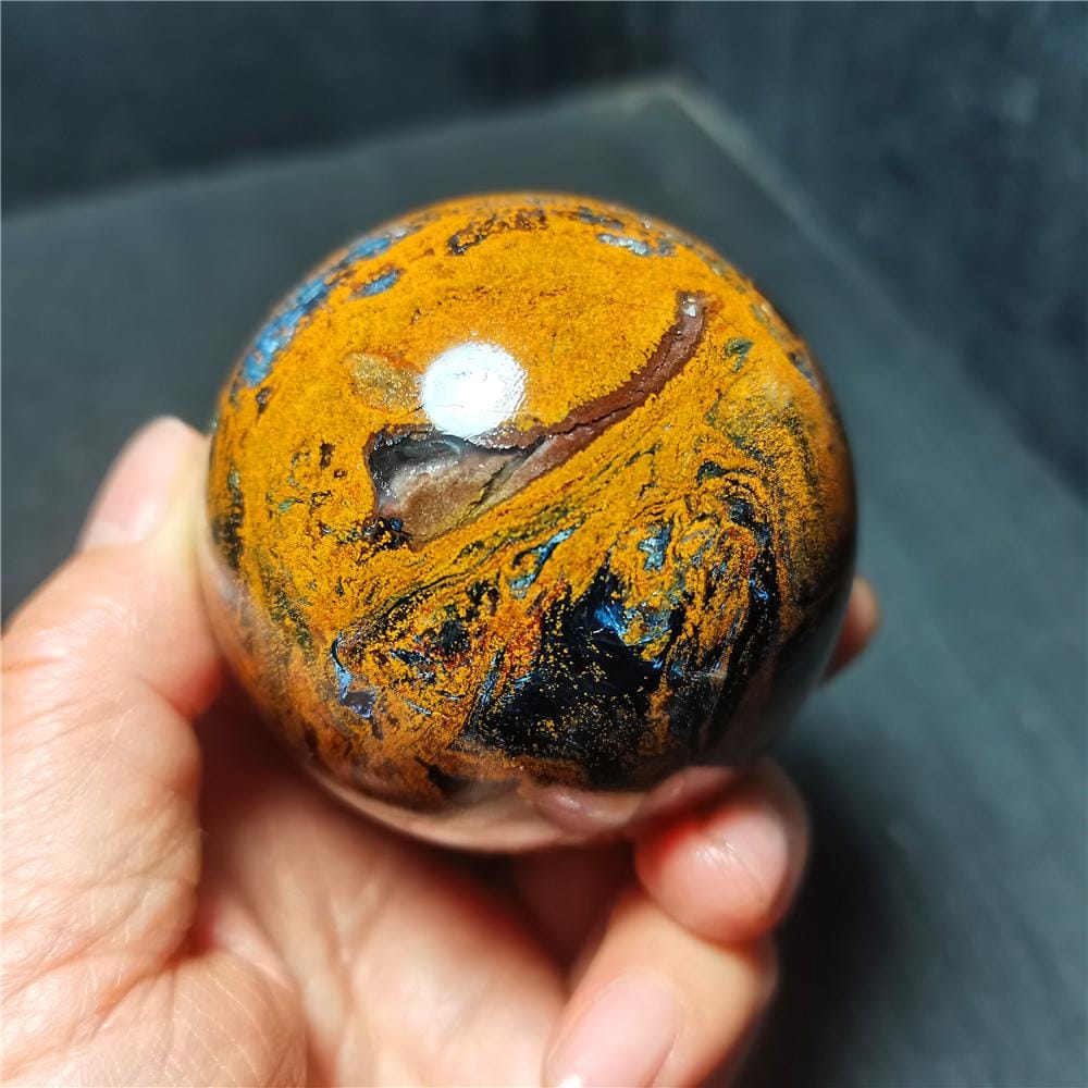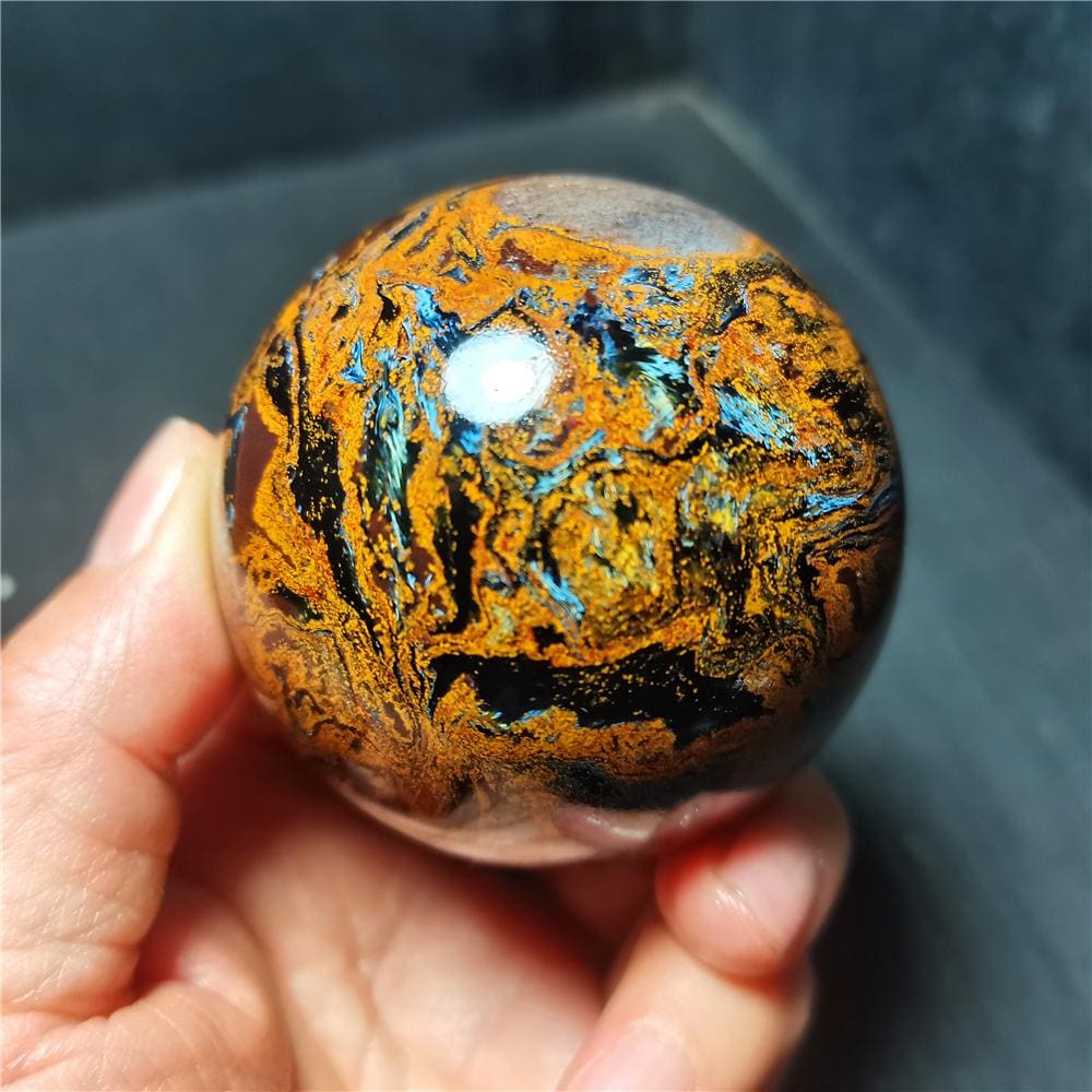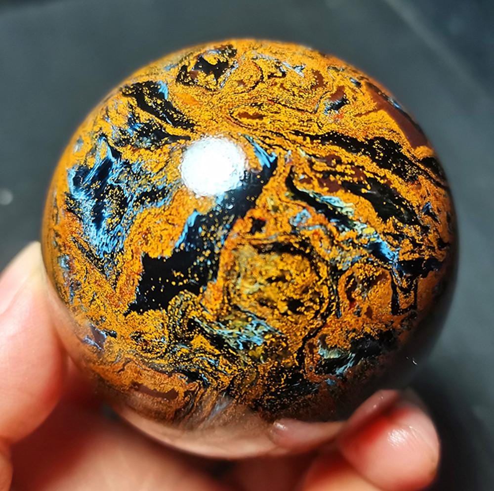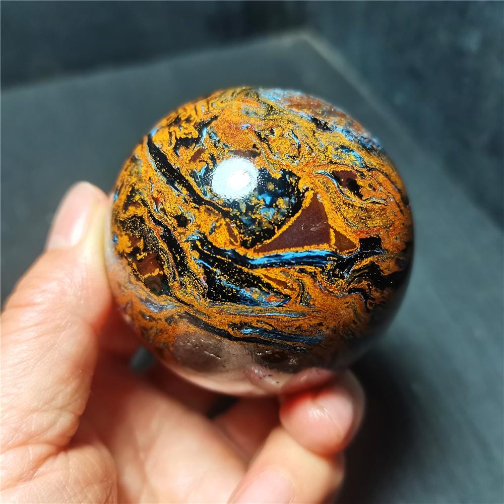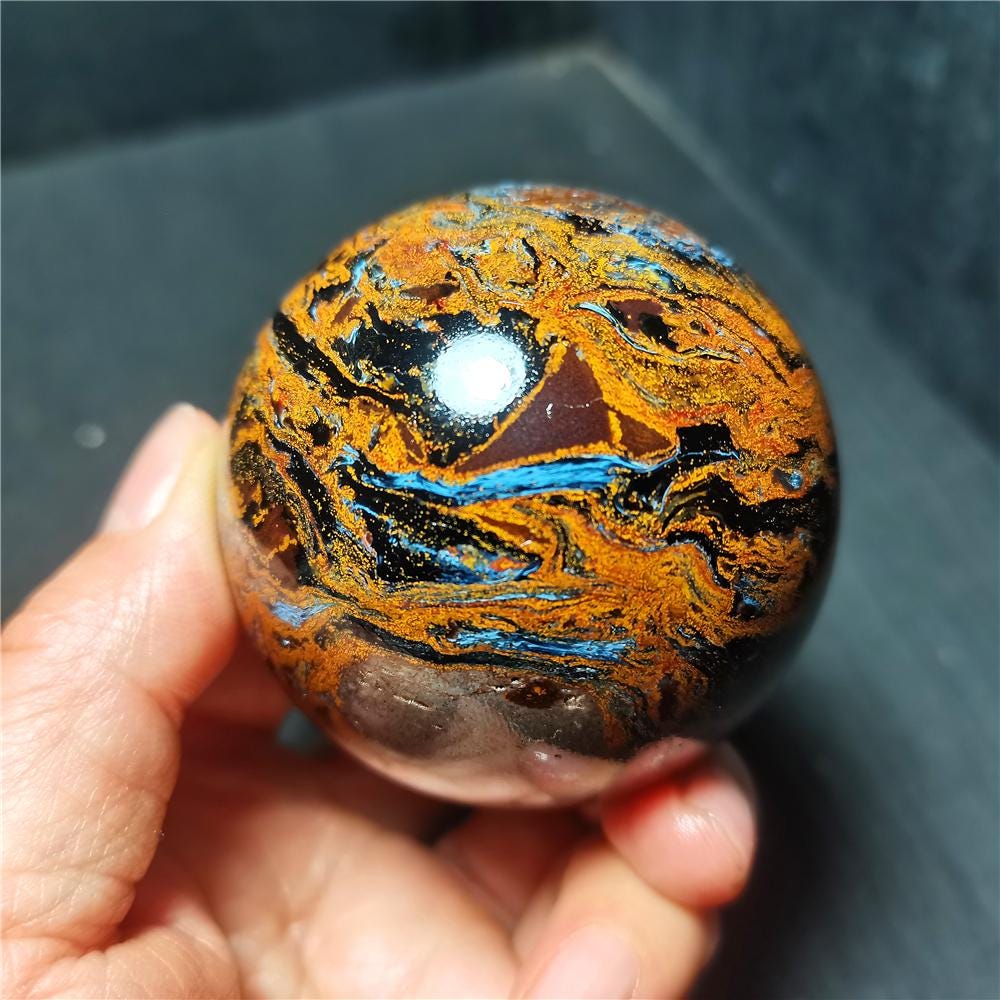 Note: Note: Texture is natural, color is natural. The one you see in the photo is the exact one you will receive. Gemstone: Pietersite Size(mm): 60mm Weight: 330g Quantity: 1 point 1 in=25.4 mm 1 lb=453.59g