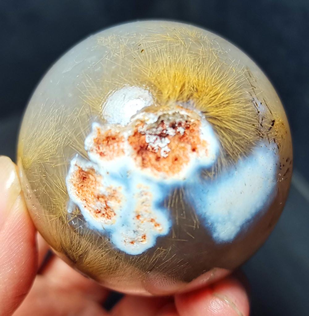 Specificatioin: This listing is for Golden Hair Rutilated Quartz Crystal. Note: The texture is natural and the agate is natural, the color is natural。 The one you see in the photo is the exact one you will receive. Gemstone: Golden Hair Rutilated Quartz Crystal Size(mm): 52mm Weight: 203.5g